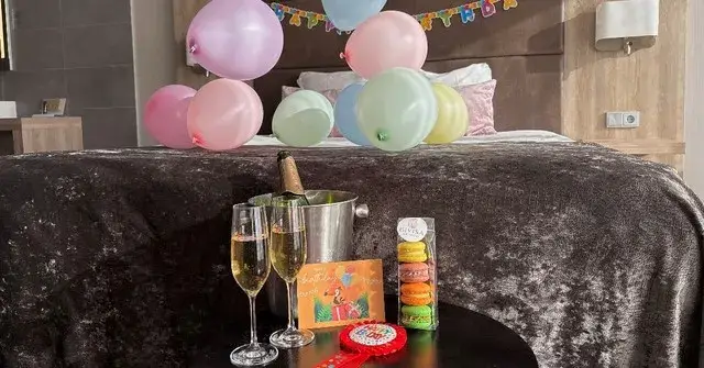 Etwas zu feiern? Für eine besonders festliche Ankunft in Ihrem Zimmer wählen Sie unser Geburtstagspaket. Mit Luftballons, Girlanden, handgemachten Macarons von Givisa Macarons, einer personalisierten Karte und einer Flasche Cava ist eine gelungene Party garantiert!