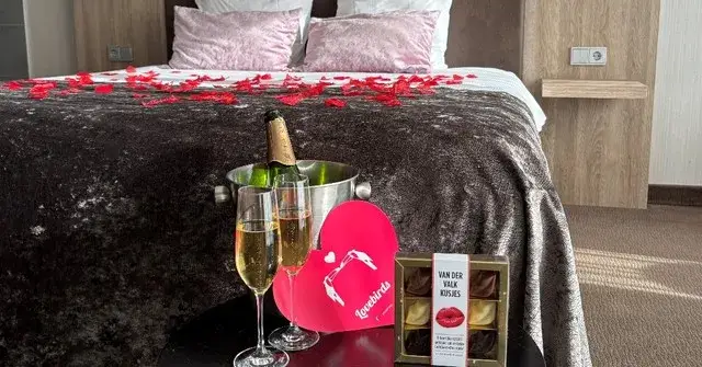 Suchen Sie nach einem noch romantischeren Kurzurlaub für Ihren Liebsten? Dann wählen Sie unser Romantik-Paket. Rosenblätter, Valk-Küsse, eine Flasche Cava und eine persönliche Karte schaffen die perfekte romantische Atmosphäre.