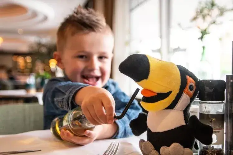 Eine bleibende Erinnerung für unsere jüngsten Gäste! Ihr Held, Timo Toucan, kann jetzt auch zu Hause gekuschelt werden. Hatten Sie einen schönen Wochenendausflug zusammen? Gerne verpacken wir das Plüschtier auch als Geschenk.