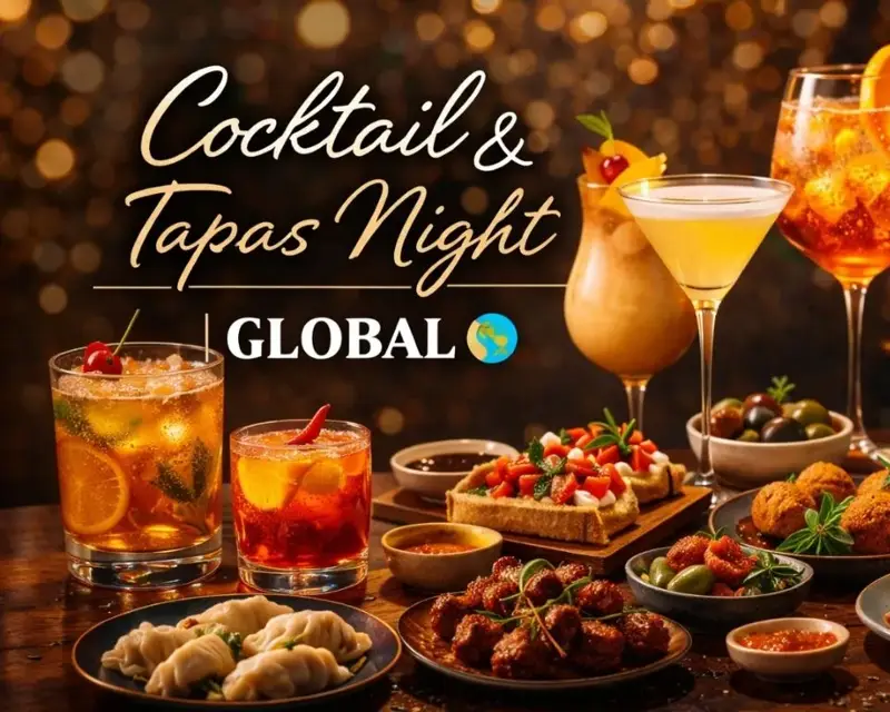 Experience an atmospheric World evening at Van der Valk Breda! Be surprised by a selection of delicious World tapas in multiple courses. The evening will be accompanied by music by a live saxophonist, who will create a warm, stylish and cozy atmosphere. This is what you can expect: * World tapas (shared dishes) * Live saxophonist * Cozy, relaxed atmosphere * A perfect night out with friends, family or colleagues Early Bird ticket * 5 courses * 1 welcome cocktail Entrance Ticket * 5 courses * 1 welcome cocktail VIP Ticket * 7 courses * 1 welcome cocktail * 1 cocktail of your choice (value €10.00) * Goody bag Please note: Changes or cancellations are possible free of charge up to 1 week before the event.