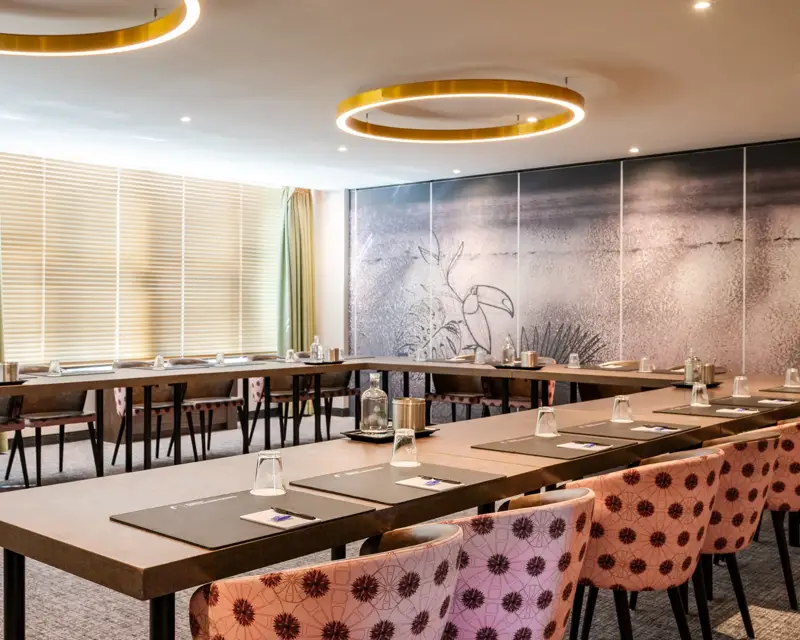 This room is located on the first floor of the hotel and can be combined with the Bouvigne Room and Molen Room. It's brightly lit and comes standard with an LED TV screen and a telephone. You can prepare your own coffee, cappuccino, etc. using the Nespresso coffee machine. A refrigerator with soft drinks is also available for your use during your meeting. All configurations are possible in this room. All our rooms can be completely darkened and are equipped with climate control and wireless internet. This room is suitable for dinners, drinks receptions, parties, meetings, presentations, interviews, and training courses.