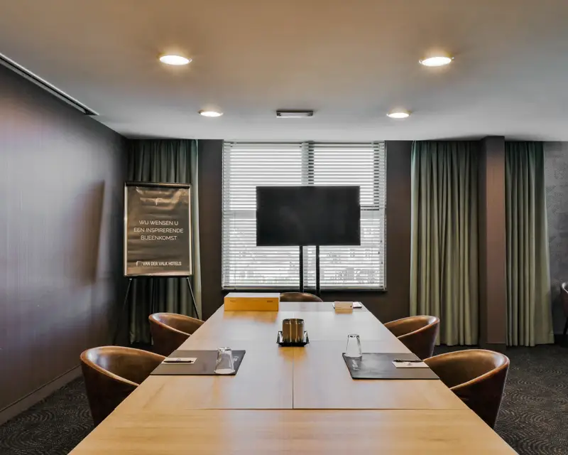 This meeting room is located on the hotel's second floor. For your convenience, there's a TV screen for presentations and a telephone for contacting reception. In the modern Coffee Corner, you can prepare your own coffee, cappuccino, etc., using the Nespresso machine. A variety of cold soft drinks are available in the refrigerator. All our meeting rooms can be completely darkened and are equipped with climate control and wireless internet.
