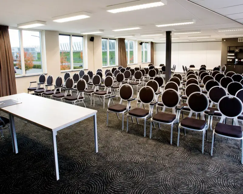 This room is located in our Business Center, the conference center next to the hotel. It's located on the first floor and can be combined with Park 2 and/or Park 2 and 3. The room features a Coffee Corner with a minibar and Nespresso machine, allowing you to prepare your own delicious coffee. The room is equipped with natural light, climate control, Wi-Fi, and an LED TV screen.