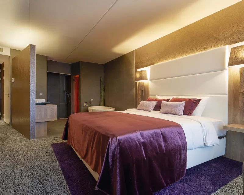 All the themed suites are equipped with 2x single box spring fitted with a double top mattress, measuring 2.10 meters in length, water boiler, minibar (for a fee) television and digital safe. The rooms have a luxury finish (equipped with accessories in the corresponding theme) with a desk, a chair and a separate seating area. This room is located in our side wing and has a balcony