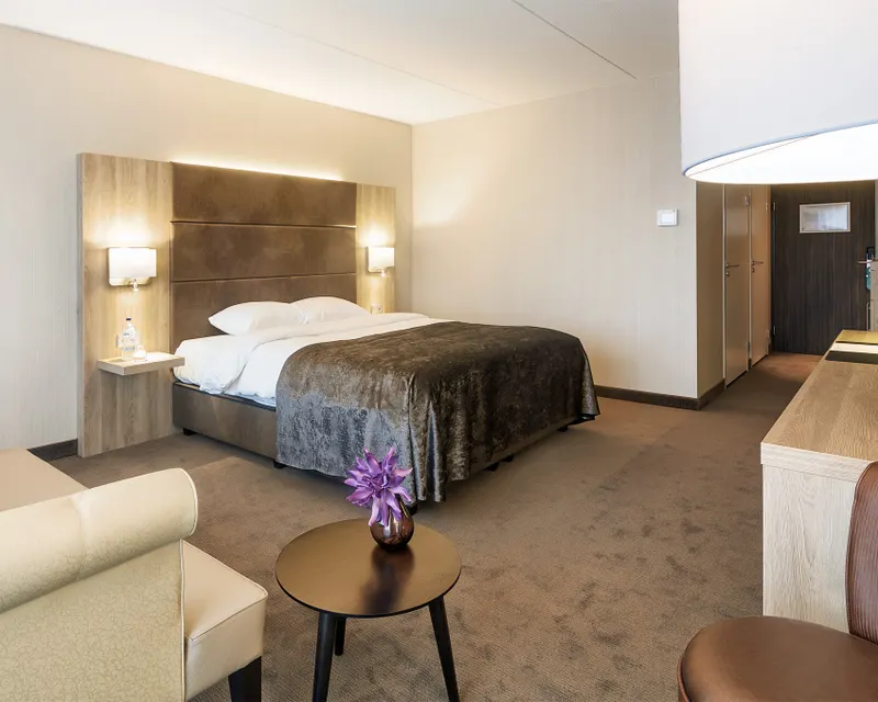 All superior rooms are equipped with 2x single box spring fitted with a double top mattress, measuring 2.10 meters in length, water boiler, fridge (not filled) television and digital safe. The rooms have a luxurious finish with a desk, a chair and a separate seating area. These rooms are located in our side wing and all of them have a balcony/terrace.